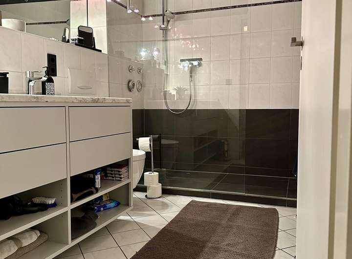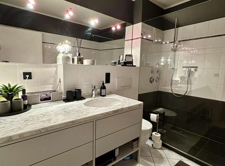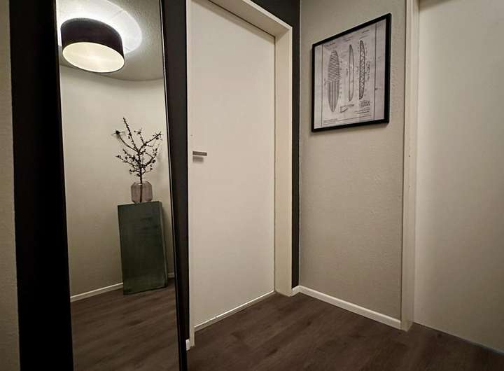 Im Schlafzimmer befindet sich ein großer, moderner und sehr geräumiger Einbauschrank. Die Wohnung ist so umfassend ausgestattet, dass man praktisch nur mit einem Koffer einziehen kann.