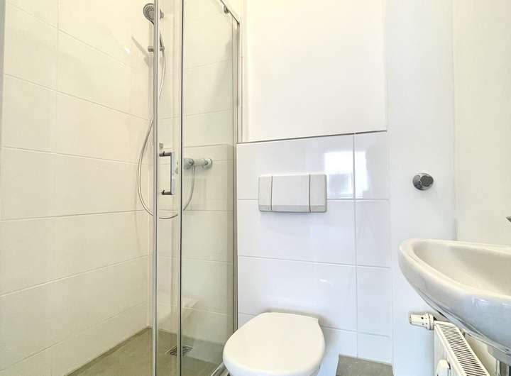 Alle Bäder sind in weiß oder modern, weiß grau gefliest.