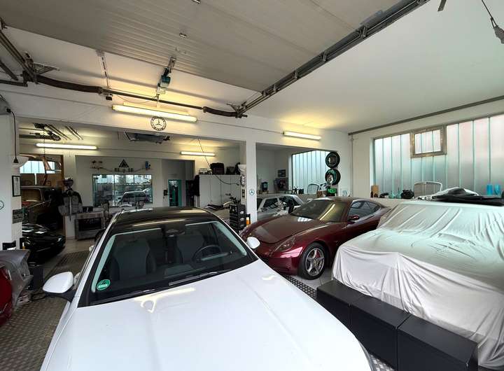 Gas - Zentralheizung, Thermo - Fenster, Elektrische Tore, Kameras, komplett ausgestatteter Ausstellungsraum mit hohen Decken, sehr hell + Büro mit Küche, WC, im EG!