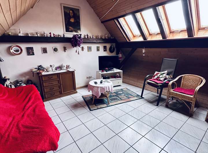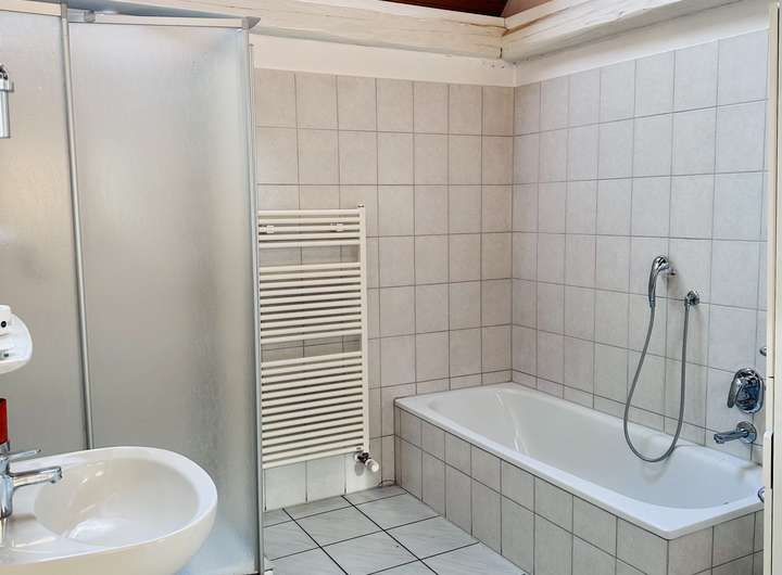 Bad mit Wanne, Dusche und Waschbecken –teilweise gefliest, mit Dachfenstern