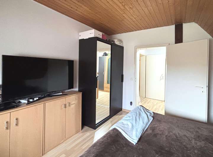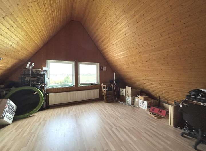Der Spitzboden beherbergt ein ca. 40 m² großes Studio, das derzeit als Nutzfläche ausgewiesen ist und vielfältige Möglichkeiten zur individuellen Nutzung bietet – etwa als Hobbyraum, Atelier oder Rückzugsort. Darüber hinaus besteht noch ein weiterer, ausbaufähiger Bodenraum, der zusätzliche Perspektiven für zukünftige Wohnraumerweiterung oder weiteren Stauraum bietet.