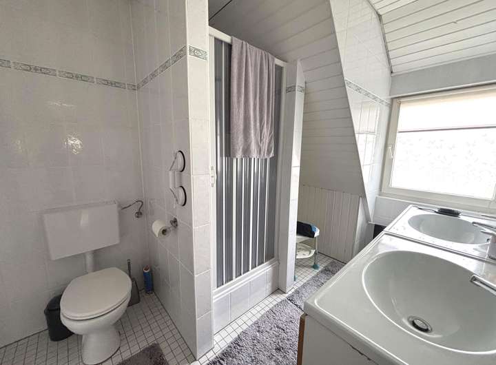 Das Dachgeschoss überzeugt mit einem durchdachten Grundriss und bietet reichlich Platz für die ganze Familie. Der Elternbereich verfügt über ein gemütliches Schlafzimmer, ein Ankleidezimmer und ein eigenes Duschbad. Zudem stehen vier weitere Schlaf- oder Kinderzimmer, ein Wannenbad sowie ein Abstellraum zur Verfügung.