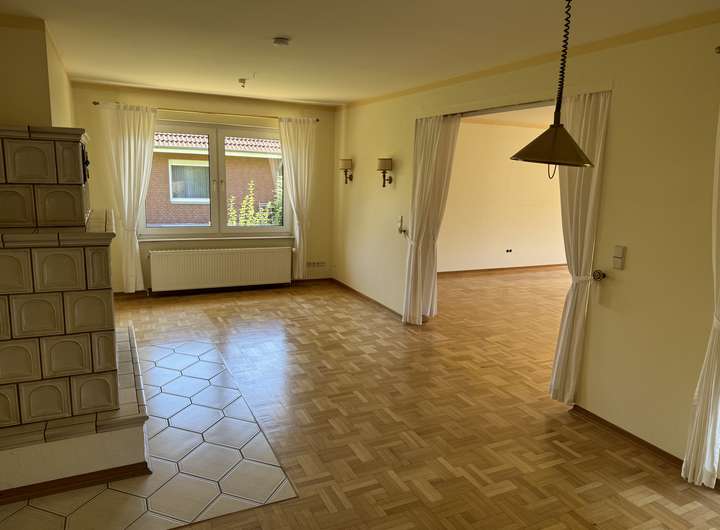 • Großzügiger Wohn- und Essbereich mit hochwertigem Parkettboden und Kamin