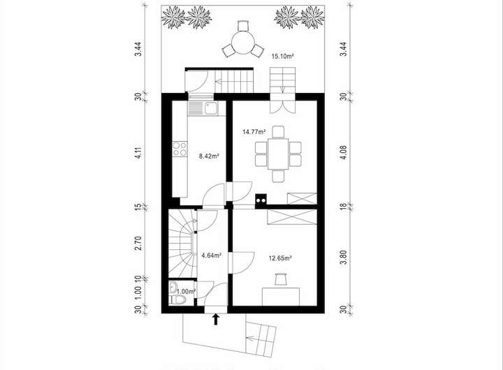 Eigene zuwegung. Über das 52 M² Grundstück das ihnen zu 50% mit dem Nachbarn gehört haben Sie die möglichkeit ihren Garten zu befahren.