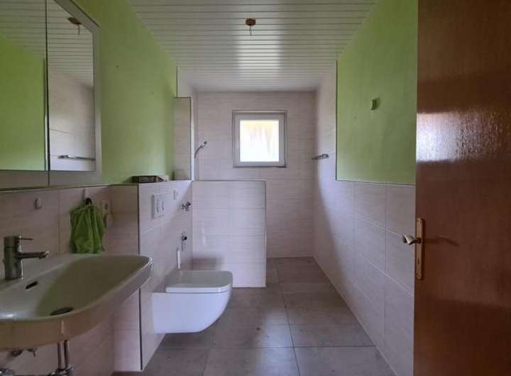 Diele, Wohnküche mit Essplatz, Wohnzimmer, Terrasse mit Zugang zum Garten, 2 Schlafzimmer, neues Bad (behindertengerechte Dusche, Waschbecken, WC)