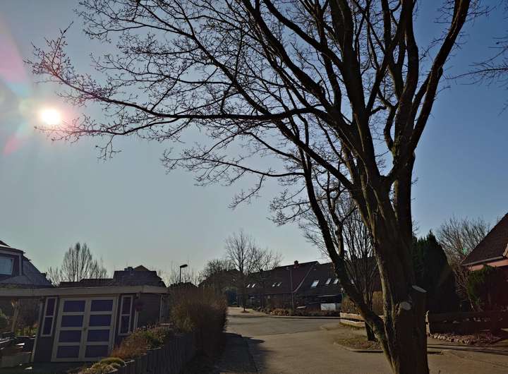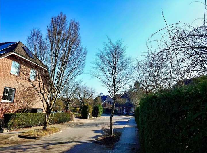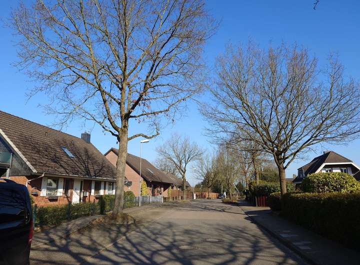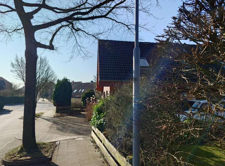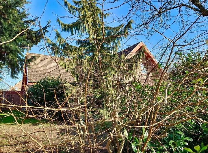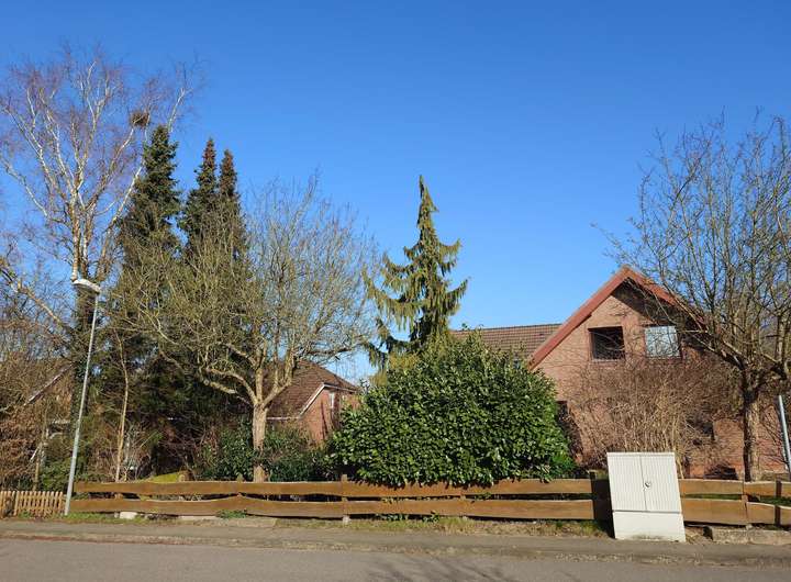 Zuerst fällt der liebevoll gestaltete Garten, des auf einem Eckgrundstück, gelegenen Einfamilienhauses, auf. Die aufwendige Bepflanzung mit einer Eichenhecke und weiteren Ziergehölzen lädt zum Verweilen ein. Das Gebäude selbst hat eine schöne Klinkerfassade, mit einem gepflegten, mit Tonziegeln gedecktes, Satteldach.