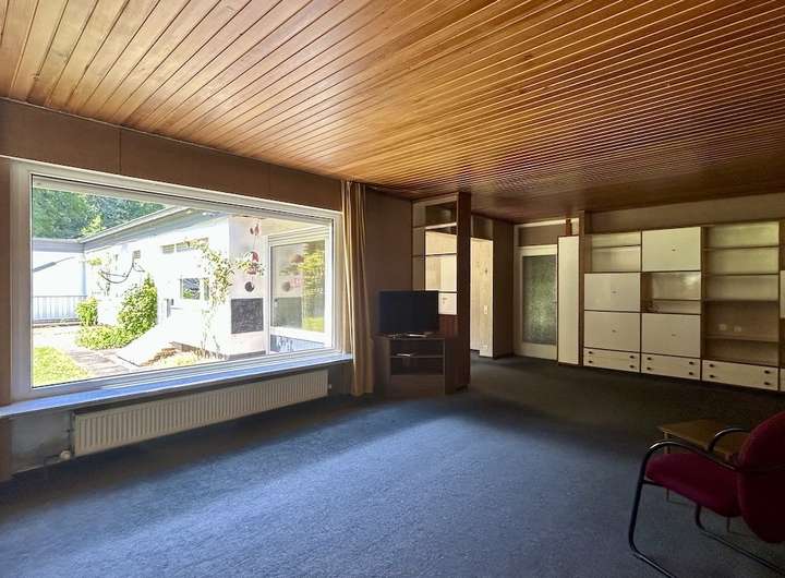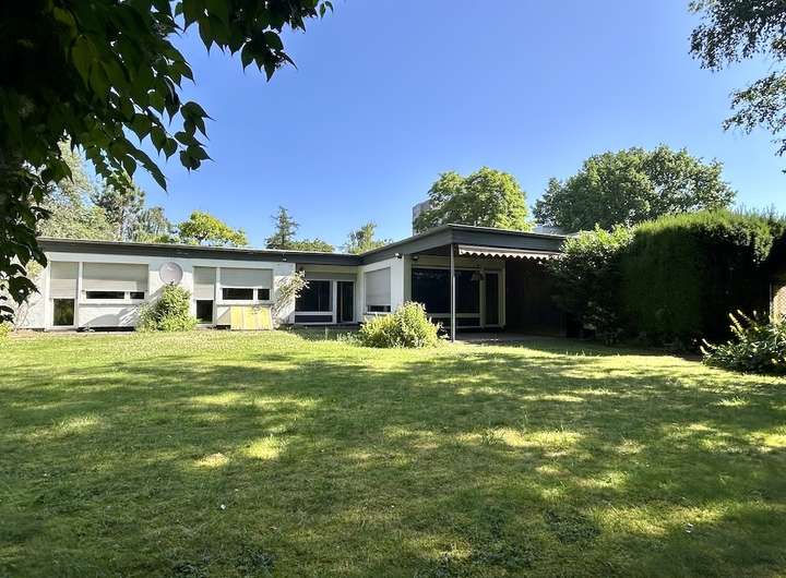 Entdecken Sie Ihren Traumwohnort in der idyllischen Umgebung von Frankfurt-Niederursel! Dieser großzügige Bungalow bietet mit ca. 162 m² Wohnfläche und einer durchdachten Raumaufteilung ideale Voraussetzungen für Familien und Gartenliebhaber. Nur wenige Schritte vom malerischen Martin-Luther-King-Park entfernt, genießen Sie die Ruhe und den Komfort einer geschätzten Wohngegend. Erbaut im Jahr 1964 in massiver Bauweise, überzeugt dieses Einfamilienhaus durch seine lichtdurchfluteten 6 Zimmer, die auf einer einzigen Wohnebene angeordnet sind. Sie finden ein weitläufiges Wohn- und Esszimmer, ein Arbeitszimmer, drei Schlafzimmer, zwei Küchen, ein Tageslichtbad mit Wanne und WC, ein Duschbad sowie ein separates Gäste-WC und einen praktischen Abstellraum. Der wunderschöne Garten mit eigenem kleinen Teich und die herrliche Terrasse sind direkt über das Wohn- und Esszimmer sowie zwei der Schlafräume zugänglich. Das Untergeschoss bietet zusätzlich ca. 140 m² Nutzfläche und umfasst ein großes Hobbyzimmer, drei Kellerräume, einen Heizungsraum, ein WC sowie eine großzügige Waschküche. Da der Bungalow sanierungsbedürftig ist, bietet er Ihnen die einzigartige Möglichkeit, Ihre individuellen Wohnträume zu verwirklichen und die unvergleichliche Lage voll auszuschöpfen. Erleben Sie erholsame Momente im Grünen und lassen Sie den Alltagstress hinter sich. Informieren Sie sich bei unserem freundlichen Beraterteam und vereinbaren Sie jetzt einen Besichtigungstermin. Nutzen Sie diese Gelegenheit, Ihren Wohntraum in dieser begehrten Lage zu realisieren!