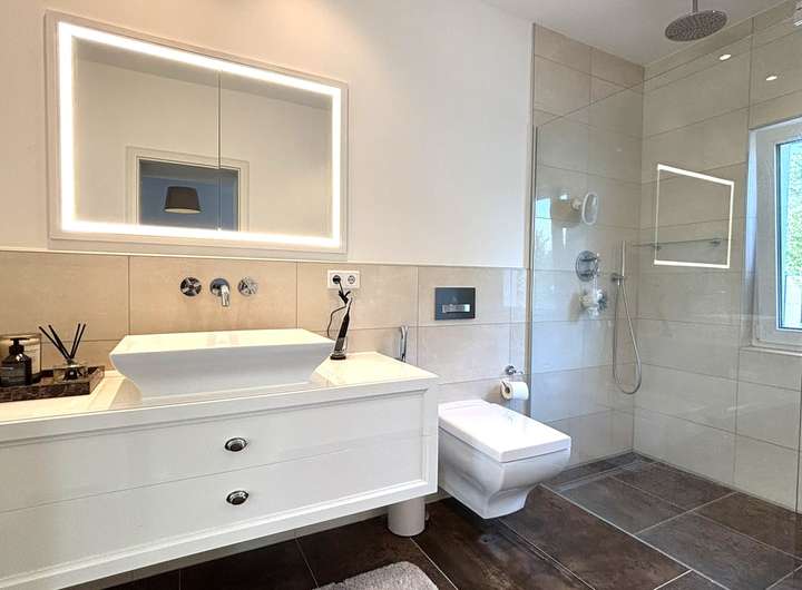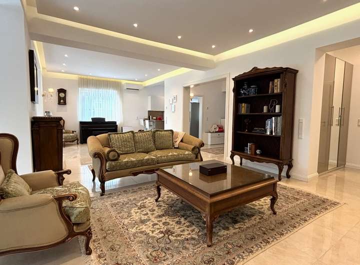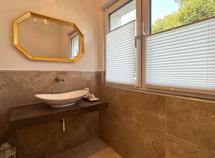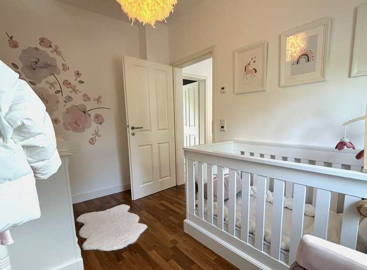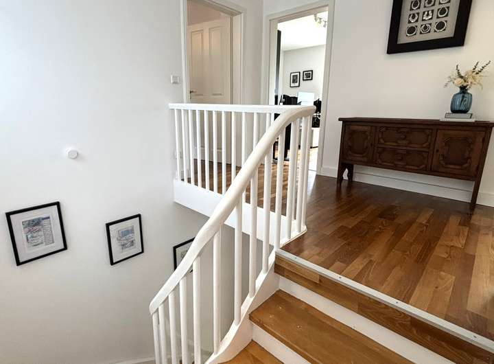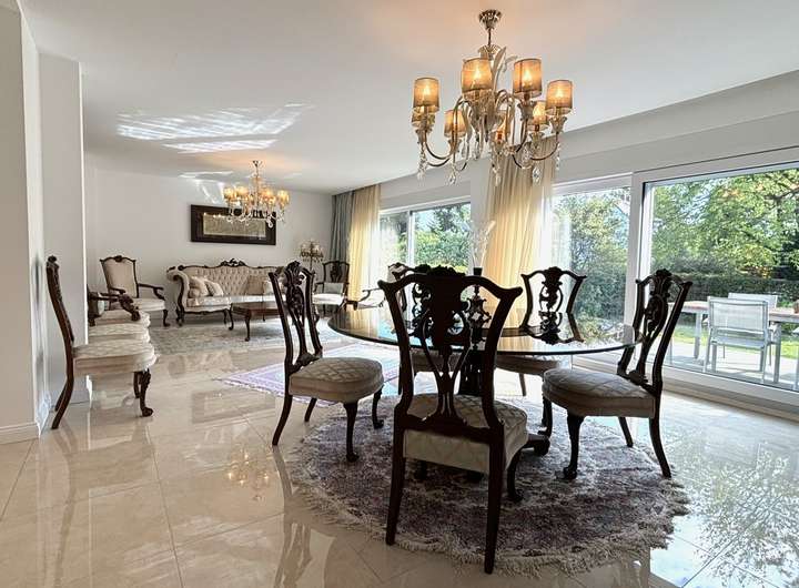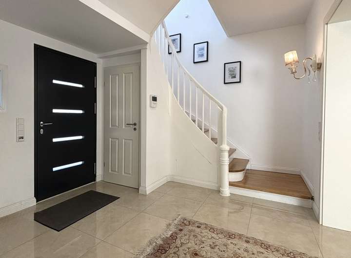 Die Ausstattung des Hauses vereint klassische Elemente mit modernen Akzenten. Hochwertige Bodenbeläge und stilvolle Details schaffen ein harmonisches Wohnambiente.