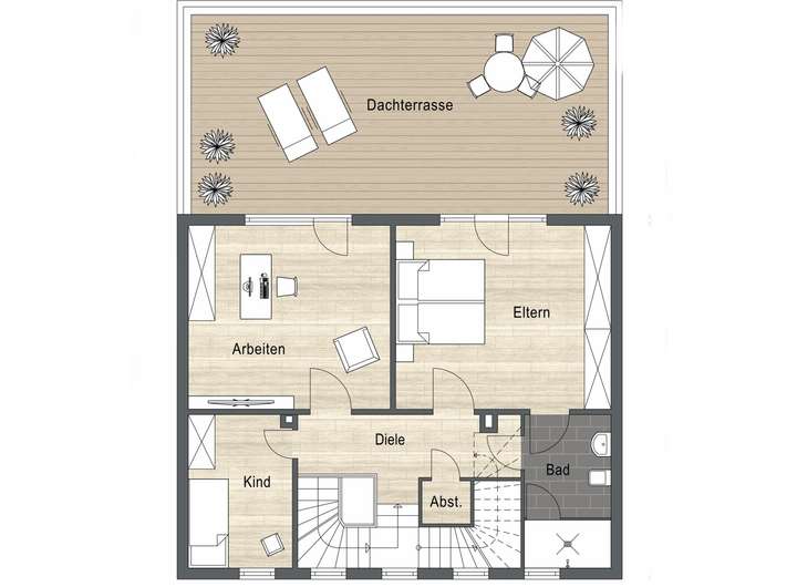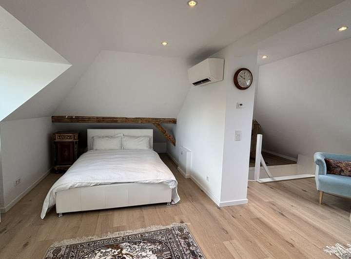 Im Obergeschoss erwarten Sie mehrere Schlafzimmer, die durch ihre behagliche Atmosphäre überzeugen. Ein besonderes Highlight ist das Dachgeschoss, das als privater Rückzugsort gestaltet ist. Der Keller bietet zusätzlichen Stauraum und einen praktischen Hobbyraum.