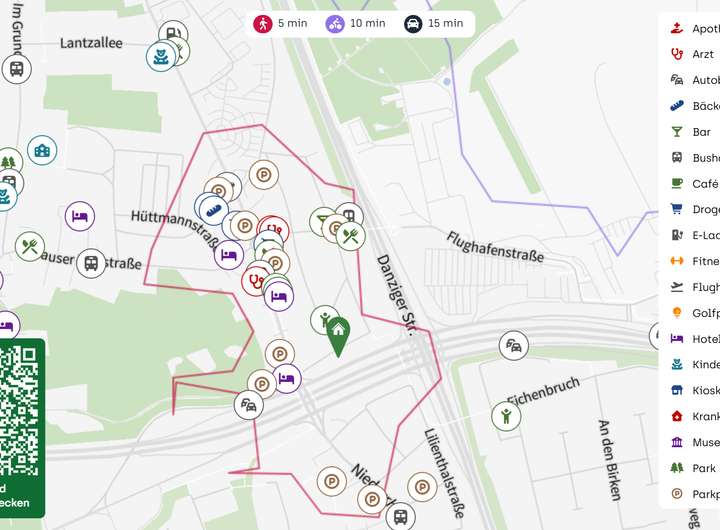 Die Immobilie liegt in einem gut angebundenen Stadtteil von Düsseldorf, der durch seine komfortable Verkehrsanbindung besticht. Die nächste Bushaltestelle ist bequem zu Fuß erreichbar, ebenso wie die U-Bahn-Station, die schnelle Verbindungen in die Innenstadt bietet. Auch die Autobahnauffahrt ist in kurzer Distanz, was eine zügige Anbindung an das überregionale Straßennetz ermöglicht. Der Flughafen Düsseldorf ist ebenfalls in der Nähe und sorgt für eine hervorragende Erreichbarkeit für Vielflieger.