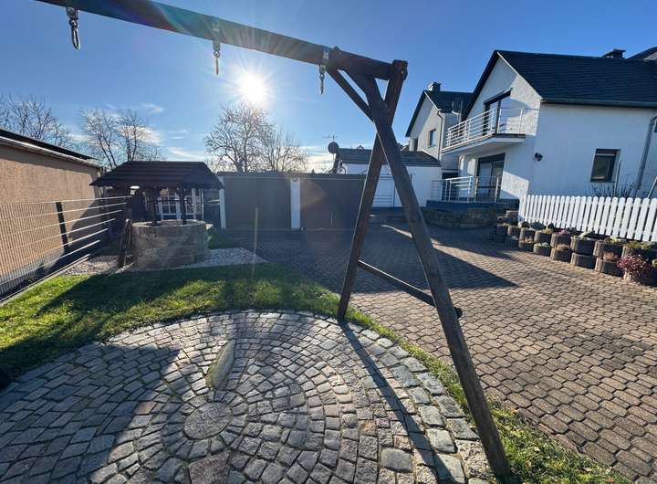 2 Garagen plus zusätzliche Stellmöglichkeiten in separatem Nebengelass, weitläufiger Hofbereich