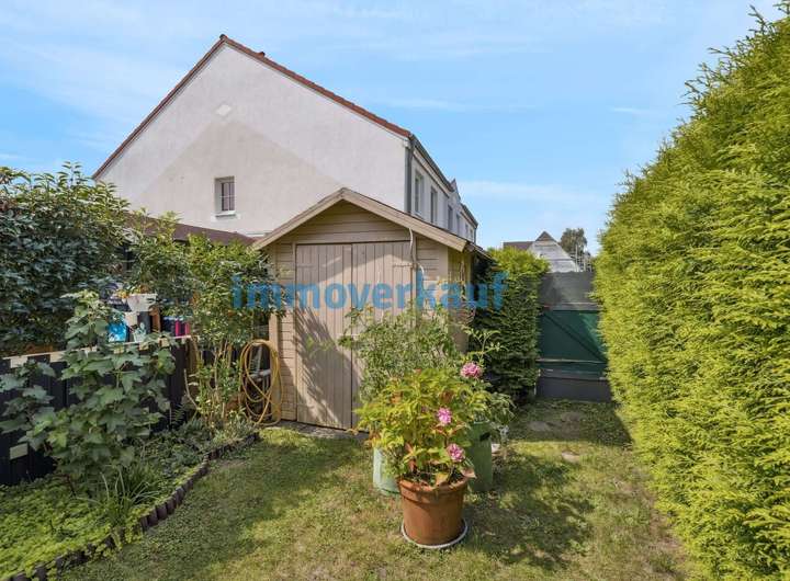 Das angebotene Mittelreihenhaus liegt in einem familienfreundlichen Wohnquartier. Es ist Teil eines Ensembles bestehend aus mehreren Reihenhäusern, die um das Jahr 2003 errichtet wurden. Spielstraßen sorgen für Sicherheit vor den Häusern, was besonders für Familien mit kleinen Kindern ein beruhigendes Lebensgefühl bedeutet. Mit einer Größe von ca. 139 m² bietet das Süd - West - Grundstück viel Platz zum Spielen, Grillen und Gärtnern. In einem Schuppen lassen sich Gartengeräte oder anderes problemlos verstauen. Im Verlauf der Jahre wurde sich liebevoll um die Immobilie gekümmert, was sich am Erscheinungsbild zeigt.