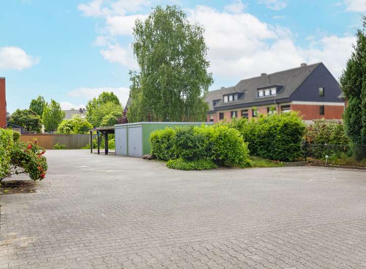 Ein eigener Kellerraum (Sondereigentum) ist vorhanden, ebenso ein PKW-Stellplatz hinter dem Haus. Zwei Garagen stehen der Hausgemeinschaft zur Fahrradunterbringung zur Verfügung.