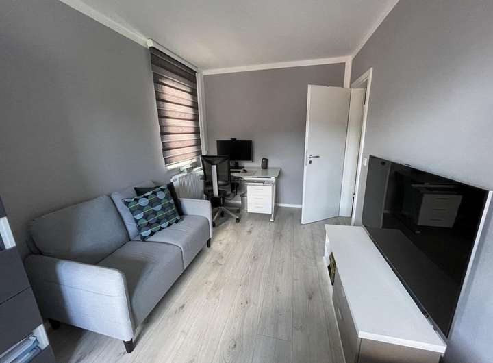 Der großzügige Wohn- und Essbereich im Erdgeschoss öffnet sich direkt zur Terrasse und in den Garten. Dadurch entsteht eine angenehme Verbindung zwischen Innen- und Außenbereich, die sich ideal für Familien, Homeoffice oder ruhiges Wohnen eignet. Die vollständig ausgestattete Einbauküche inklusive Kühlschrank, Geschirrspüler und sämtlichen Küchenelementen ist bereits im Mietumfang enthalten.