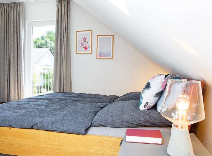 Im Dachgeschoss erwarten dich drei helle Schlafzimmer und ein modernes Badezimmer, die ausreichend Platz für Privatsphäre, Erholung und individuelle Gestaltung bieten. Home 9 vereint durchdachte Architektur mit wohnlicher Gemütlichkeit und ist perfekt geeignet für das tägliche Familienleben.