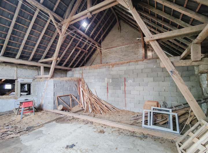 An das Wohnhaus grenzt ein großes Stallgebäude mit darüberliegender Scheune. Den Stall erreicht man auf kurzem Wege über einen Gang mit weiteren Lagerräumen. Hier befindet sich auch der Zugang zum alten Bruchsteinkeller.