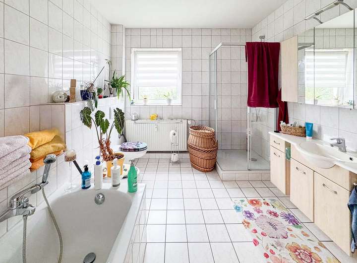 Wohn- und Geschäftshaus, Baujahr um 1930, umfassend ausgebaut und saniert um 1998/1999. Im Zuge der Sanierung wurden sämtliche Einheiten neu angelegt und ausgebaut. GZH mit WW-Bereitung (ca. 2016), im 3.OG separate Heizung (ca. 1996). Geflieste Bäder mit Wanne, Dusche, WC, Bidet und HWB, GE mit WC-Anlage. Alle Etagen sind über Fahrstuhl sowie Treppenhaus erreichbar. Kunststoffthermofenster mit Isolierverglasung. Insg. guter und gepflegter Unterhaltungszustand mit normalen Gebrauchsspuren und weiterem Modernisierungsbedarf. Auf dem großzügigen Grundstück befinden sich liebevoll angelegte Mietergärten, ein Carport mit zwei Stellplätzen sowie ein Nebengebäude mit rund 180 m² Nutzfläche, das derzeit als Lager genutzt wird. Am Rand des Grundstücks befindet sich ein Garagenkomplex mit fünf Garagen und einer Nutzfläche von insgesamt ca. 360 m².