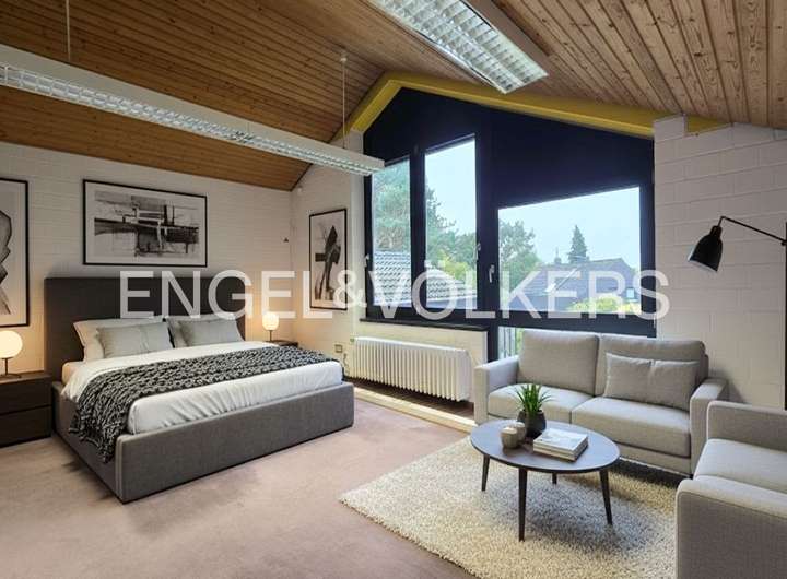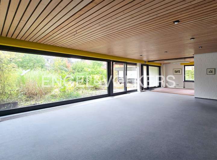 Dieses außergewöhnliche Architektenhaus aus dem Jahr 1974 begeistert durch seine Großzügigkeit, Helligkeit und Vielseitigkeit. Auf einem weitläufigen Grundstück von ca. 1.320 m² genießen Sie viel Raum für Familie, Beruf und Freizeit.