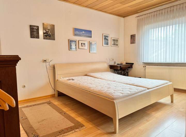 1. OG: Flur, Hauptschlafzimmer, 2 weitere Schlafzimmer, Bad mit Wanne