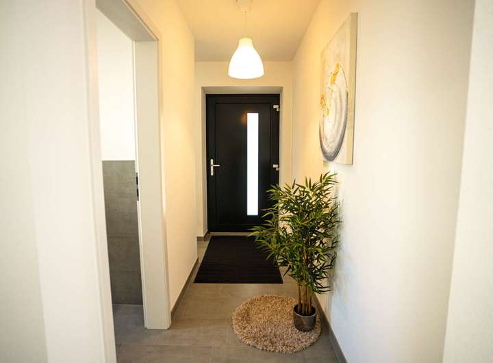 Auf rund 122m² Wohnfläche und fünf gut geschnittenen Zimmern finden Familien, Paare oder Homeoffice-Nutzer viel Platz. Drei geräumige Schlafzimmer bieten flexible Nutzungsmöglichkeiten. Der lichtdurchflutete Wohn-/Ess-/Kochbereich bildet das Herzstück des Hauses: Große Fensterflächen, moderne Bodenbeläge und stilvolle Fliesen schaffen eine warme, zeitgemäße Atmosphäre. Direkt an die Küche angeschlossen befindet sich eine praktische Speisekammer, die idealen Stauraum für Vorräte bietet.