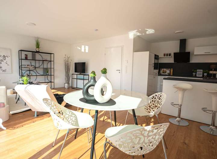 Diese moderne Doppelhaushälfte in Parnkofen bei Pilsting bietet ein hochwertiges Wohnambiente für alle, die Ruhe, Stil und eine sehr gute Verkehrsanbindung schätzen. Das Haus wurde im energieeffizienten KfW-40-QNG-Standard errichtet und überzeugt dadurch mit äußerst niedrigen Nebenkosten sowie einem angenehmen Wohnklima zu jeder Jahreszeit.