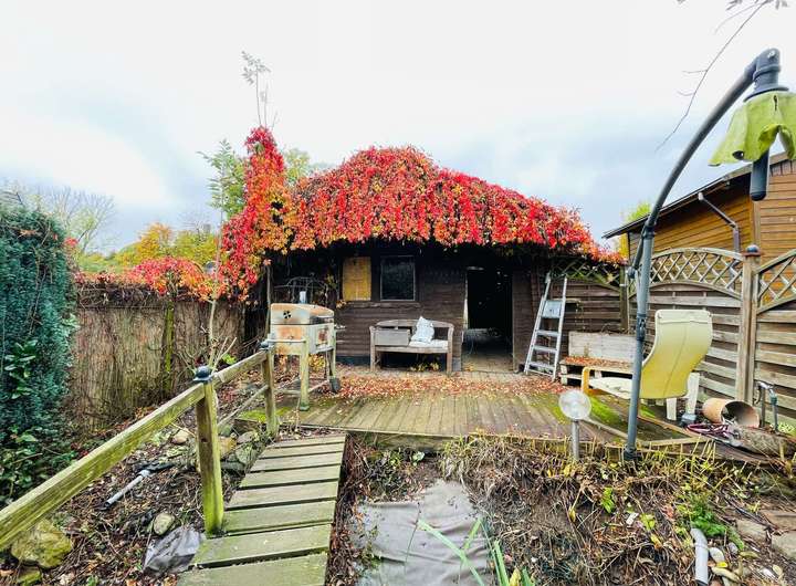 Über den Wintergarten gelangen Sie in ihren eigenen Garten. Er lässt sich vielseitig gestalten und bietet viel Raum für Ideen. Ein echtes Highlight ist das große Blockhaus mit einem zusätzlichen Hobbyraum und praktischen Abstellflächen. Über einen Durchgang gelangen Sie von hier in den oberen Gartenbereich. Ob Beete, Werkbank oder ruhige Sitzecke, hier ist vieles möglich.