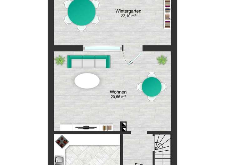 Über den Windfang betreten Sie den hellen Flur. Links liegt die Küche, in der 2020 ein neuer Fliesenspiegel eingebaut wurde. Von hier aus gelangen Sie in das Wohnzimmer mit Kaminofen. Der Kamin sorgt für eine warme, einladende Atmosphäre. Vom Wohnzimmer aus geht es direkt in den großzügigen Wintergarten, der gefliest ist und einen schönen Blick in den Garten bietet. Ein idealer Ort, um den Feierabend entspannt ausklingen zu lassen.