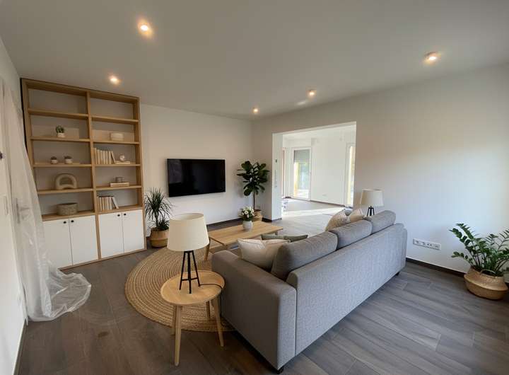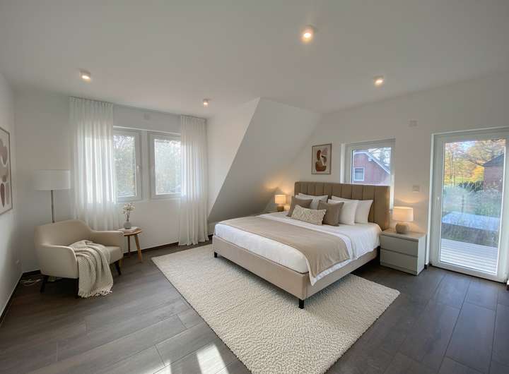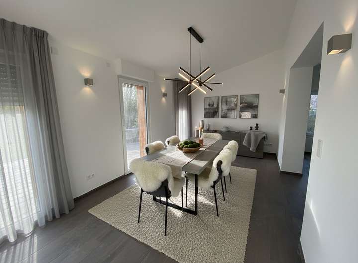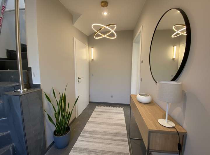 - Moderne Deckenbeleuchtung in allen Räumen sowie passende Außenbeleuchtung auf Balkonen und der Terrasse
