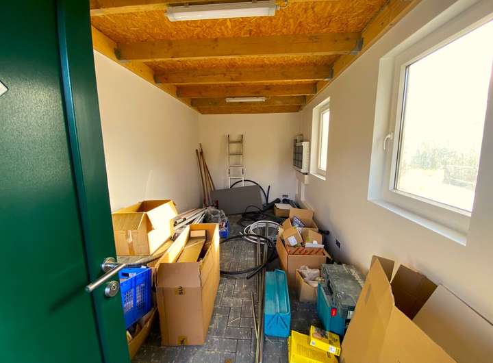 Der Keller mit ca. 54,4 m² ist in fünf Räume unterteilt, die Kellertreppe sowie alle Räume sind komplett mit Epoxidharzboden versehen und vielseitig nutzbar. Bei Bedarf ein Raum gerne als Home-Gym oder Hobbyraum. Der große, vollständig eingezäunte Garten bietet Sicherheit und Freiraum für Kinder. Die neu gebaute, erhöhte Steinterrasse lädt zum Verweilen ein, während der Aluminium-Abstellschuppen im Garten praktischen Stauraum schafft.
