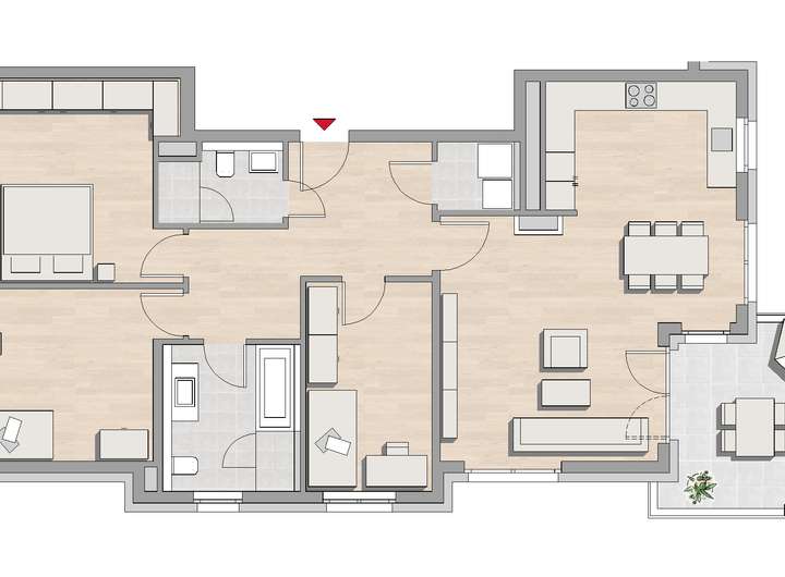 Das Gebäude wird in solider Mauerwerksbauweise errichtet und erfüllt alle Anforderungen gemäß GEG 2024. Fundamente und Bodenplatte in Beton. Die Außenwände sowie die tragenden Innenwände werden aus Kalksandstein bzw. Stahlbeton hergestellt. Die Geschossdecken bestehen aus Stahlbeton. Die Geschosstreppen sind ebenfalls aus Stahlbeton gefertigt. Sie werden mit polierten Granitstufen belegt. Auf das Außenmauerwerk wird ein Wärmedämmverbundsystem (WDVS) aufgebracht.