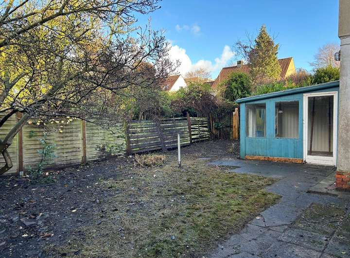 Im Garten des Kaufobjekts befindet sich ein abgängiger Geräteschuppen.