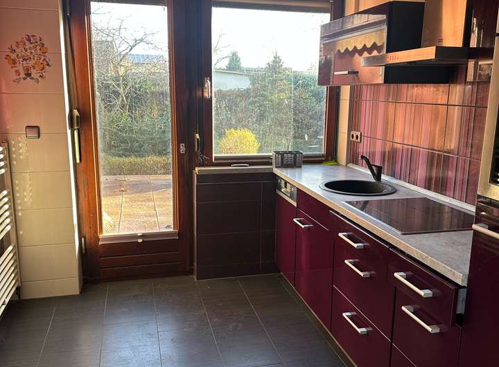 …Einbauküche mit Tür auf die Terrasse und in den Garten