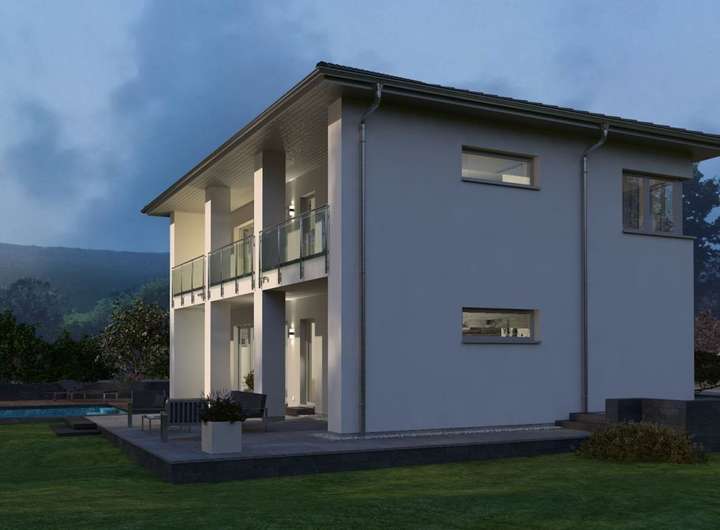 Für alle, die es groß mögen und viel Raum zum Leben und Entspannen suchen, ist die Stadtvilla 15 genau das richtige Objekt. Auf die künftigen Eigenheimbewohner wartet hier eine Grundfläche von mehr als 200 Quadratmetern, verteilt auf zwei Etagen, sowie ein großzügiger, überdachter Balkon, der vor allem in der warmen Jahreszeit dazu einlädt, die Seele baumeln zu lassen. Auch das Innere der Villa kann sich sehen lassen: Wohn- und Ess-Kochbereich sind optisch durch eine Treppe voneinander getrennt und erstrecken sich insgesamt über eine Fläche von fast 50 Quadratmetern. Außerdem Parterre: eine sich an die Küche anschließende Speisekammer, Hauswirtschaftsraum sowie Gäste-WC. In der oberen Etage gelangen die künftigen Eigenheimbesitzer von der großen Galerie in die beiden Kinderschlafzimmer, den Elternbereich, das Badezimmer sowie auf den großen Balkon. Auch zwei weitere Zimmer ermöglichen den direkten Zugang nach draußen.