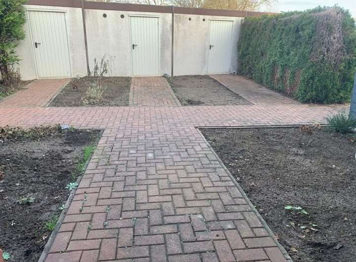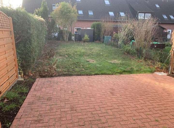 Toll geschnittenes, ruhig gelegenes und gerade aufwendig modernisiertes RMH, Satteldach mit Ziegeln (anthrazit), Dachsparren mit Dämmung, Außenmauerwerk rot verklinkert (mit Dämmung), Bj. 1997, pflegeleicht angelegter Garten, mehrere Blumenbeete vorm Haus, Garage auf separaten Garagenhof.
