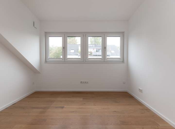 Die Ausstattung umfasst gespachtelte Wandflächen, einen hochwertigen Eichenparkettboden in den Wohnräumen sowie großformatige Fliesen in den Bädern. Eine Fußbodenheizung mit Raumtemperaturreglern sorgt für ein angenehmes Raumklima. Fenster mit Dreifachverglasung, elektrische Rollläden und eine Solarkollektoranlage zur Warmwasseraufbereitung runden die moderne Haustechnik ab.