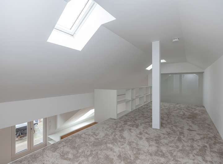 Die Wohnung umfasst drei Zimmer, darunter ein Schlafzimmer sowie ein weiterer Raum, der als Gäste- oder Arbeitszimmer genutzt werden kann. Das offen gestaltete Dachstudio verleiht dem Wohnbereich eine besondere Großzügigkeit und eignet sich ideal für individuelle Wohnkonzepte.