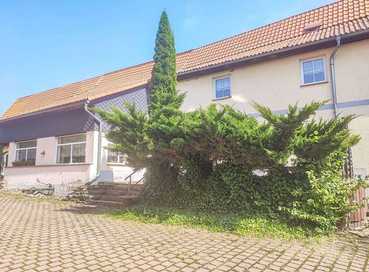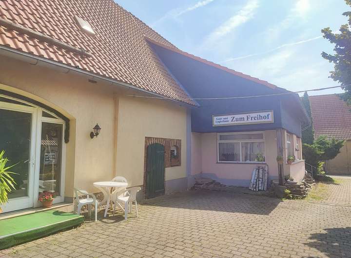 Der Freihof präsentiert sich als vielseitiges Wohn- und Geschäftshaus mit insgesamt sieben Wohneinheiten und zwei Gewerbeflächen, die als traditionsreiche Gaststätte und Fleischerei-Verkaufsstelle genutzt werden können bzw. werden. Ergänzt wird das Angebot durch eine großzügige Scheune, die mit einer Photovoltaikanlage (14,8kWp Nennleistung) ausgestattet ist und so einen nachhaltigen Beitrag zur Energieversorgung leistet. Insgesamt stehen etwa 661m² Mietfläche zur Verfügung, die sich auf einem ca. 1.520m² großen Grundstück verteilen. Für die Bewohner stehen zudem sieben Stellplätze bereit.