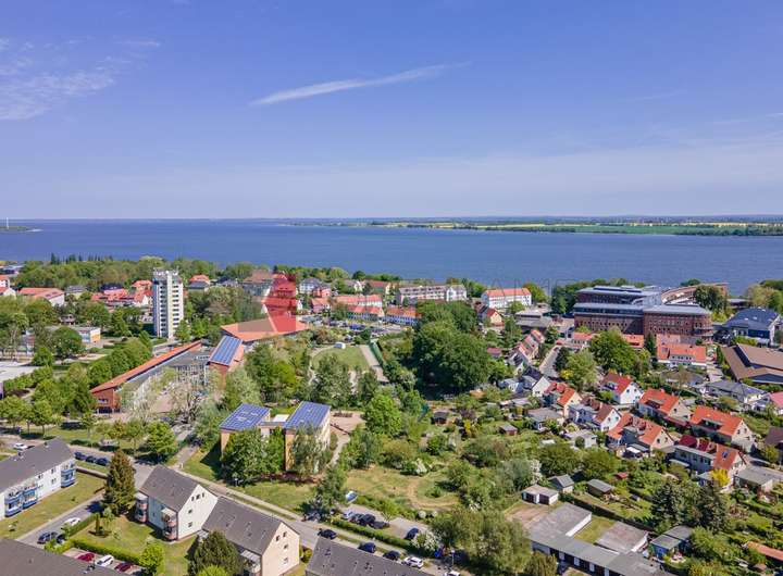 In naher Umgebung von ca. einem Kilometer ist alles zu finden, was es an Gütern des täglichen Bedarfs und gleichzeitig Erholung bedarf. In ca. 800 m ist die Sundpromenade und gleichzeitig der frisch wiederhergestellte Badestrand von Stralsund fußläufig erreichbar. Gleicher Weg und gleiche Entfernung gelten ebenso für das Helios Hanseklinikum, das Krankenhaus, der Stadt am Sund. In ca. 500 m zweimal Netto und ein Markant Supermarkt mit einer integrierten kleinen Poststelle. Ebenso fußläufig oder mal eben mit dem Fahrrad sind die 1,4 km bis in die Altstadt, sowie zur Apotheke, Ärzte in ca. 500 Metern, Restaurants, Pflegeeinrichtungen, Frisör u.v.m. "gleich nebenan". Für die Studierenden sind es gerade mal 5 Minuten mit dem Rad bis zur Hochschule. Für die, die mit dem Bus unterwegs sind, befinden sich Bushaltestellen mit einer Entfernung von ca. 100 m fast "vor der Tür". Die Schulpflichtigen könnnen mal eben die ca. 6 min in die Montessori Grundschule radeln und der Weg in die Kita Klabautermann für die ganz Kleinen ist mit 500 m in überschaubarer Entfernung. Der Stralsunder Haupbahnhof mit seinem regionalen und überregionalen Verkehrsangebot ist in ca. 2 km erreichbar. Abendliche Spaziergänge, morgendliches Jogging, einfach zum Erholen mal eben runter an den Strand zum Strelasund oder auf einen kleinen Bummel in die Altstadt - dieser Teil der Stadt ist mit seiner grünen Umgebung und der guten Erreichbarkeit zur Altstadt infrastrukturell einer der beliebtesten Stadtbezirke Stralsunds.