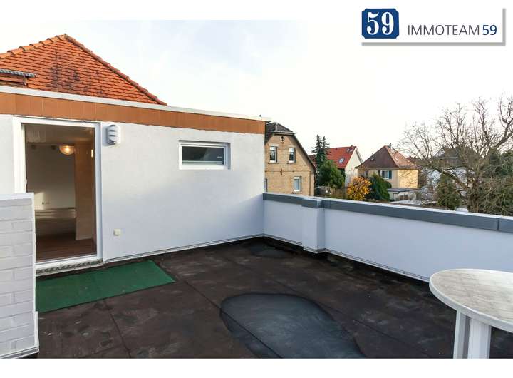 Das oberste Geschoß des Hauses macht dieses Bauwerk einzigartig. Der dachhohe Raum mit den großen Fenstern und die anschließende Dachterrasse nach Süden hin werden Ihre Lieblingsplätze in den Monaten sein, in denen man sich nach Sonnenstrahlen sehnt. Dieser tolle Raum könnte z.B. auch Ihr "Masterbedroom" sein mit angrenzendem stylischen Badezimmer. Die Badewanne ist perfekt für ein entspanntes Bad nach einem anstrengenden Tag.