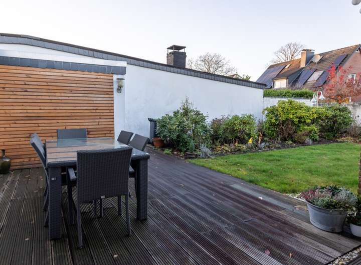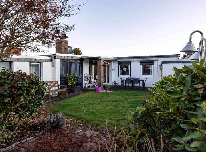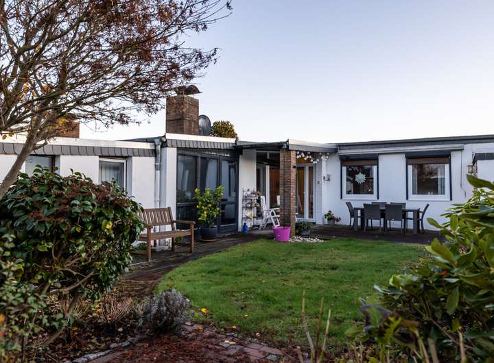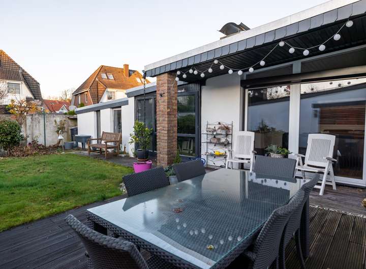 Dieser gepflegte Bungalow überzeugt durch seine ruhige Sackgassenlage und eine großzügige, familienfreundliche Raumaufteilung. Auf einer Ebene stehen Ihnen 6 Zimmer, ein Wannenbad sowie ein Gäste-WC mit ebenerdiger Dusche zur Verfügung – ideal für verschiedene Wohnkonzepte. Die Kunststoff-Isolierfenster aus 2012 und vorhandene Rollläden sorgen für gute Energieeffizienz und zusätzlichen Wohnkomfort. Die Küche ist mit einer gepflegten Einbauküche ausgestattet, die vor rund 10 Jahren erneuert wurde. Das Wannenbad wurde 1997 modernisiert, während das Gäste-WC im Jahr 2012 eine zeitgemäße Erneuerung erhielt. Im Außenbereich bietet die teilweise überdachte Terrasse mit Markise einen geschützten Ort für entspannte Stunden. Beheizt wird das Haus durch eine Kombi-Brennwerttherme aus ca. 2022, die für eine effiziente Wärmeversorgung sorgt. Zusätzlich wurden Türen und weitere Bereiche des Hauses renoviert, sodass sich der Bungalow insgesamt in einem sehr gepflegten Zustand präsentiert und ein komfortables, ebenerdiges Wohnen ermöglicht.