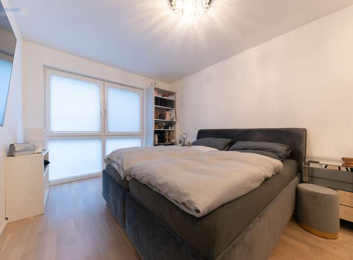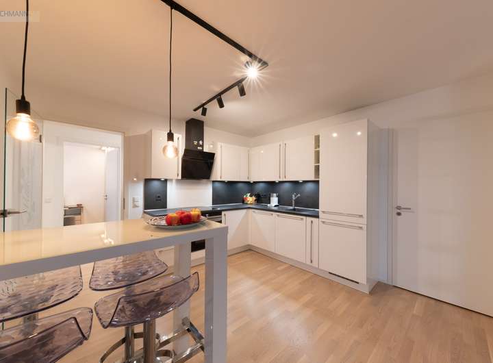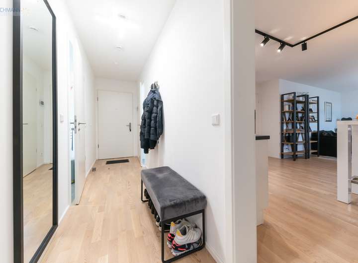 Edles Parkett, eine behagliche Fußbodenheizung, eine Videogegensprechanlage sowie elektrische Rollläden unterstreichen den gehobenen Wohncharakter. Zur Wohnung gehören darüber hinaus ein eigener Kellerraum, ein extrabreiter Tiefgaragenstellplatz mit Wallbox, ein Aufzug sowie die Mitbenutzung einer gemeinschaftlichen Waschküche.