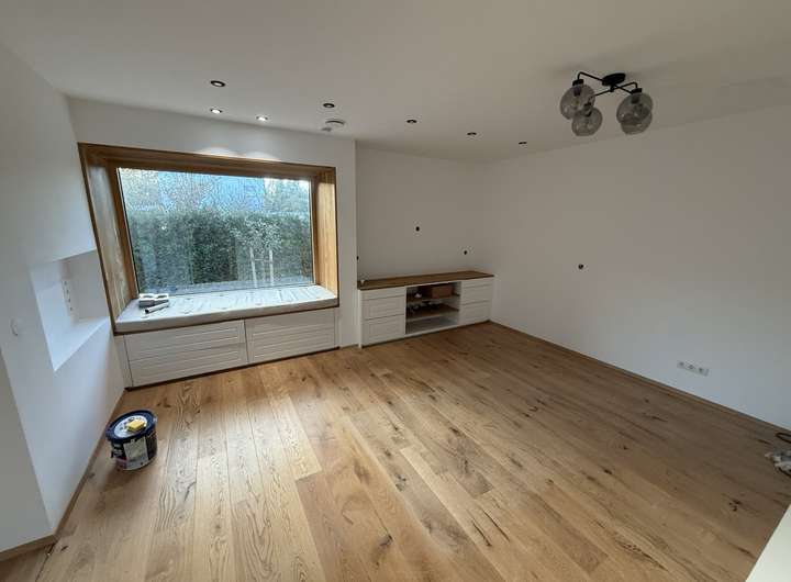 Aktuell finden noch Renovierungsarbeiten statt. Unter anderem werden 2 Scheiben der Sitzfenster durch die Firmen Weberhaus / Niveau Fenster oben ausgetauscht, da diese im ersten Sommer nach Hausbau einen Riss ausgebildet haben.