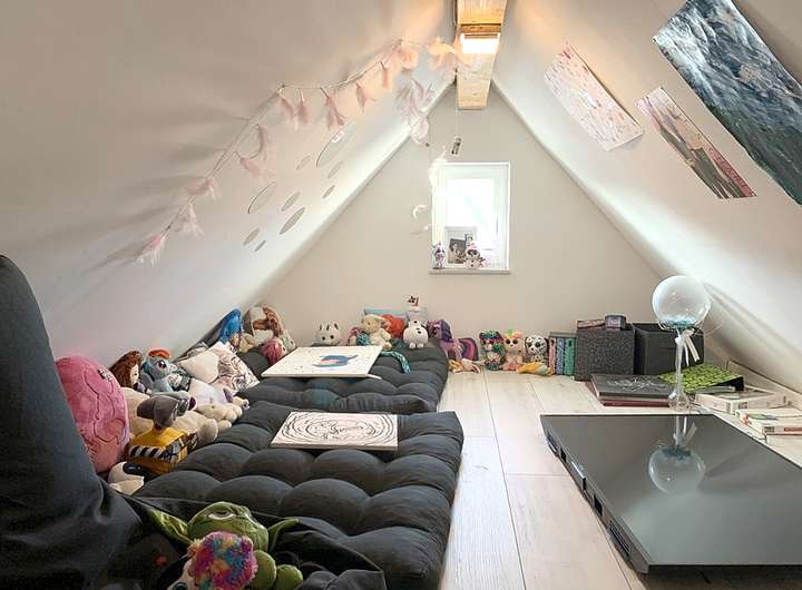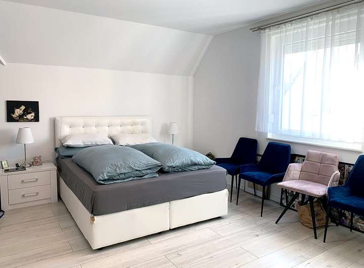 Im Oberegeschoss befindet sich neben dem Badezimmer mit Dusche, das Elternschlafzimmer und ein weiteres Zimmer. Von diesem aus erreichen Sie auch das wohnlich ausgebauten Dachgeschoss, welches viel Potenzial bietet.