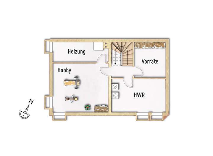 + Hobby-, Vorrats- und Hauswirtschaftsraum im UG