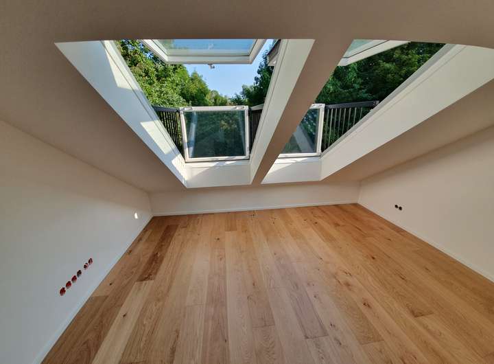 Parkett, Fussbodenheizung, 2 Balkone und 2 Terassen, sehr gute Ausstattung, Klimaanlage im DG,