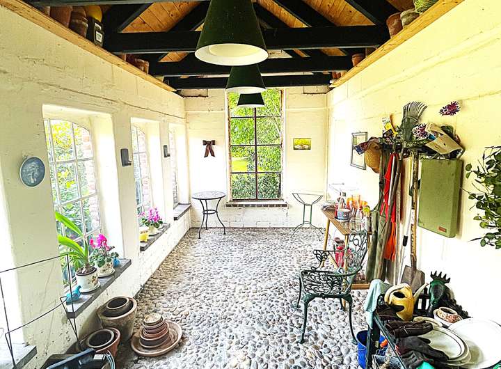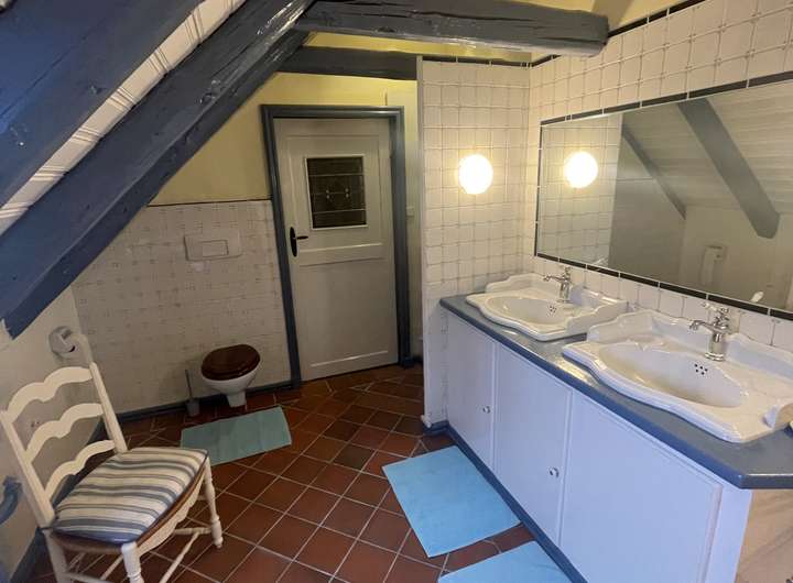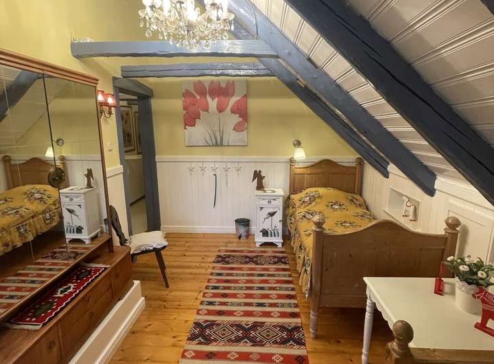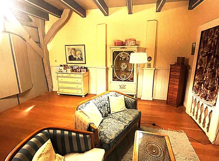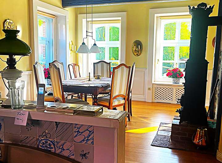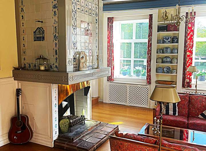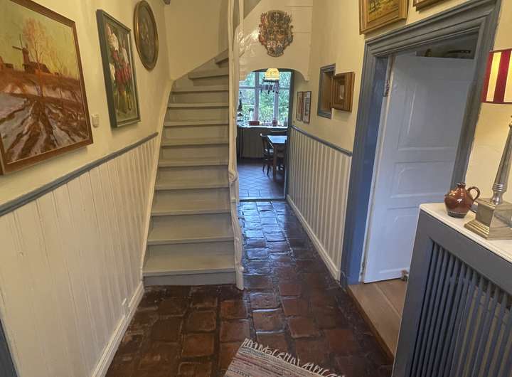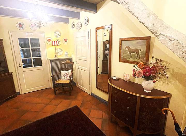 Die Raumaufteilung ist großzügig und bietet eine gemütliche Atmosphäre. Das Wohnzimmer verfügt über einen prachtvollen offenen Kamin, das Fernsehzimmer und das Büro jeweils über einen Kaminofen und das Esszimmer über einen antiken Ofen.