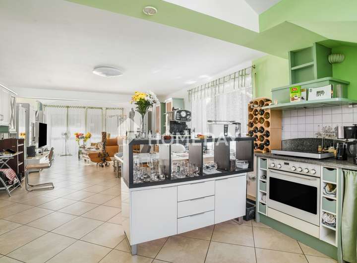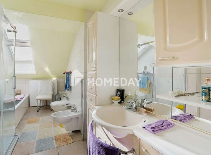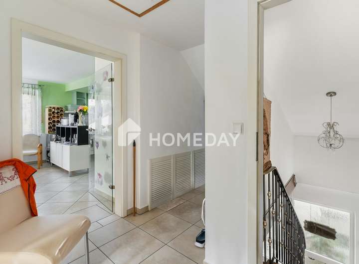 Der Wintergarten lädt das ganze Jahr über zum Entspannen ein und eröffnet einen schönen Blick in den grünen Garten. Insgesamt stehen ca. 221 Quadratmeter Wohnfläche mit neun Zimmern zur Verfügung, die sich flexibel für verschiedene Wohnkonzepte gestalten lassen. Beide Wohneinheiten verfügen über Tageslichtbäder; das Badezimmer im Erdgeschoss bietet neben einer Badewanne auch eine separate Dusche und ein Bidet. Eine Einbauküche mit hochwertigen Markengeräten ist ebenfalls bereits im Kaufpreis enthalten.