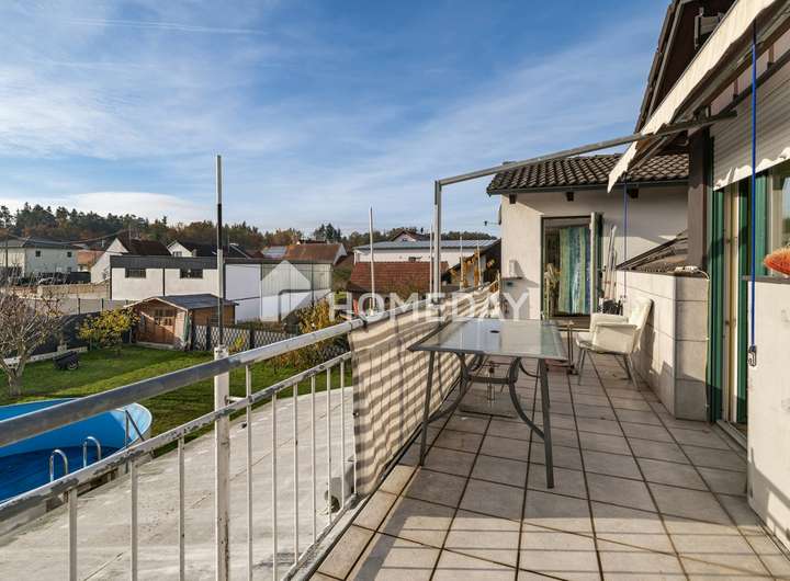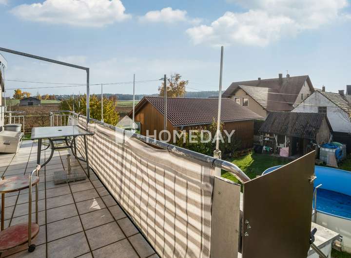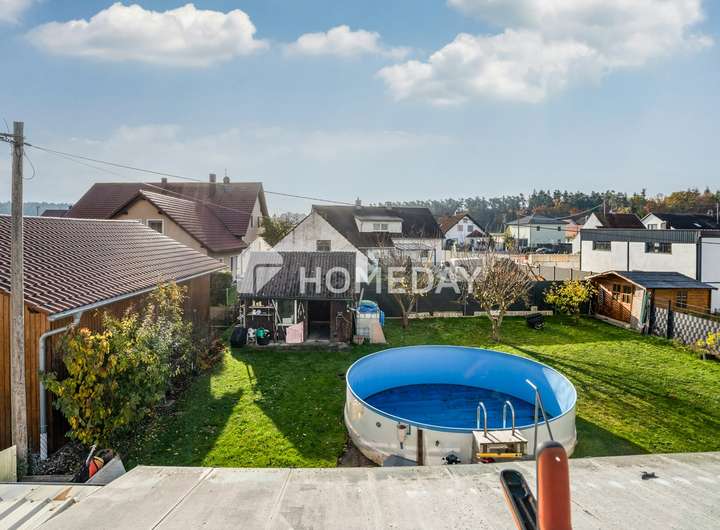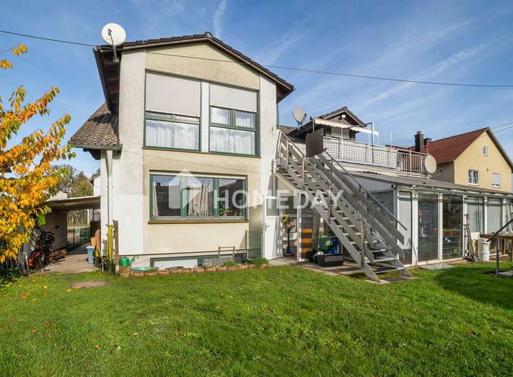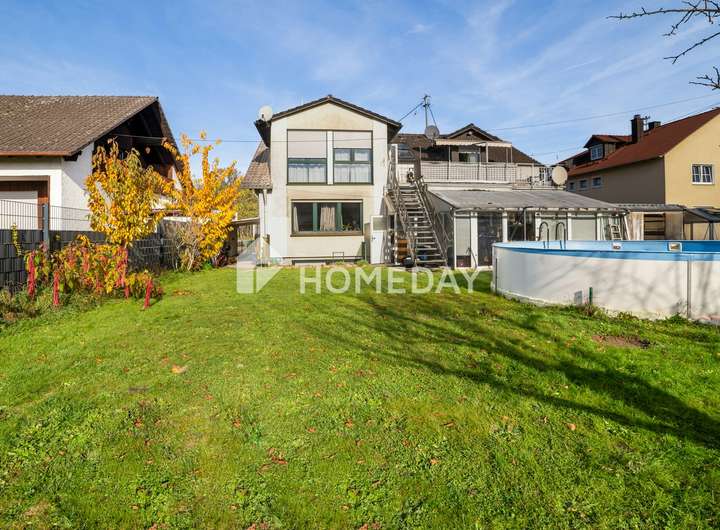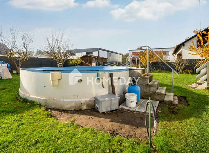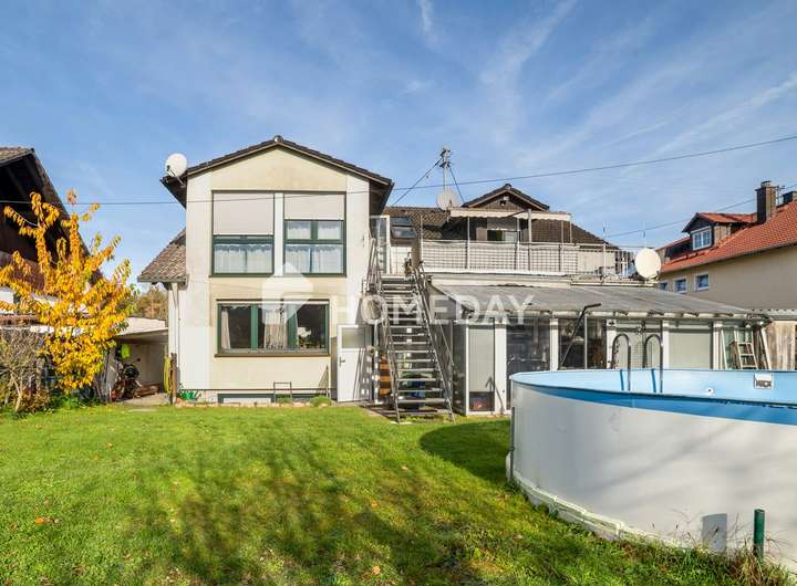 Dieses großzügige Mehrfamilienhaus aus dem Jahr 1976 präsentiert sich auf einem ca. 751 Quadratmeter großen Grundstück und bietet mit zwei Wohneinheiten vielfältige Nutzungsmöglichkeiten. Ideal für Familien mit mehreren Generationen oder zum teilweisen Vermieten. Der liebevoll angelegte Außenbereich überzeugt mit Obstbaumbestand aus Zwetschgen-, Mirabellen-, Apfel- und Kirschbäumen sowie einem Rundpool, der in den Sommermonaten für erfrischende Stunden sorgt. Zwei Gartenhäuschen bieten praktischen Stauraum für Geräte und Gartenutensilien. Ergänzt wird das Angebot durch zwei Carports und eine große Garage, die ausreichend Platz für Fahrzeuge und Fahrräder bereithalten.