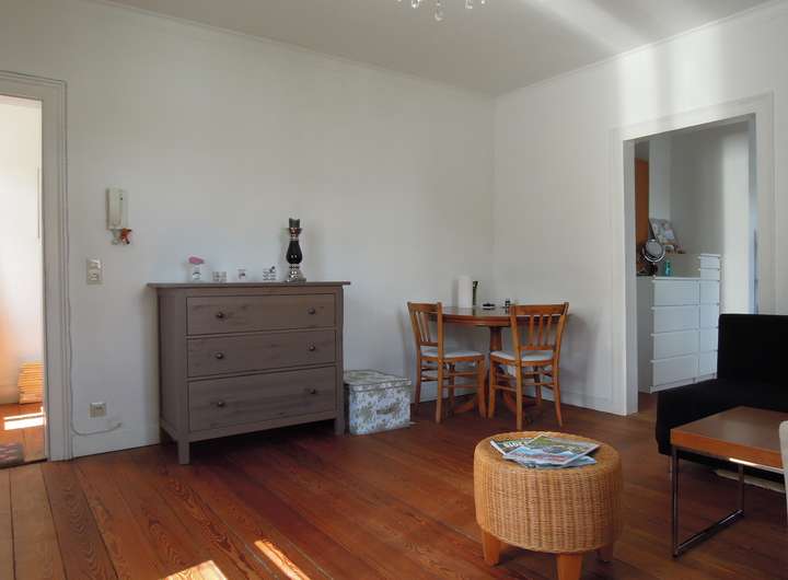 Renovierter Altbau. Geölte massive Holzdielenböden im Wohnbereich und teilweise mit Stuck. Die Wohnung befindet sich im ersten Obergeschoss. Die Wohnung wurde über die Jahre immer wieder renoviert. Zuletzt Oktober/November 2025.
