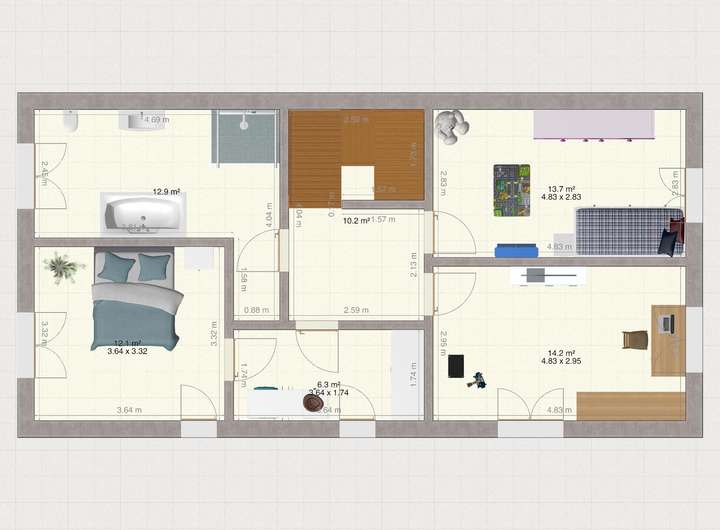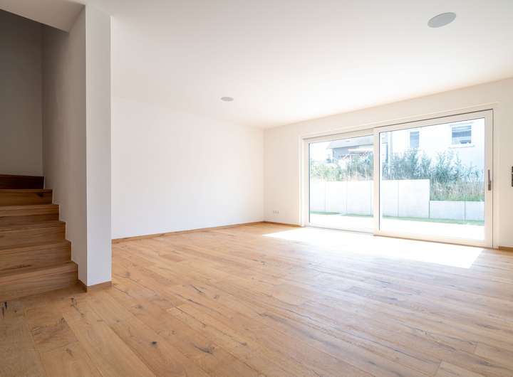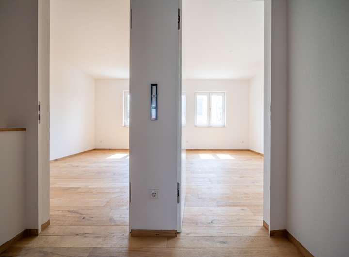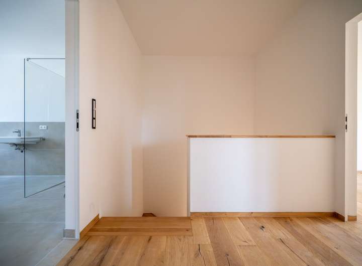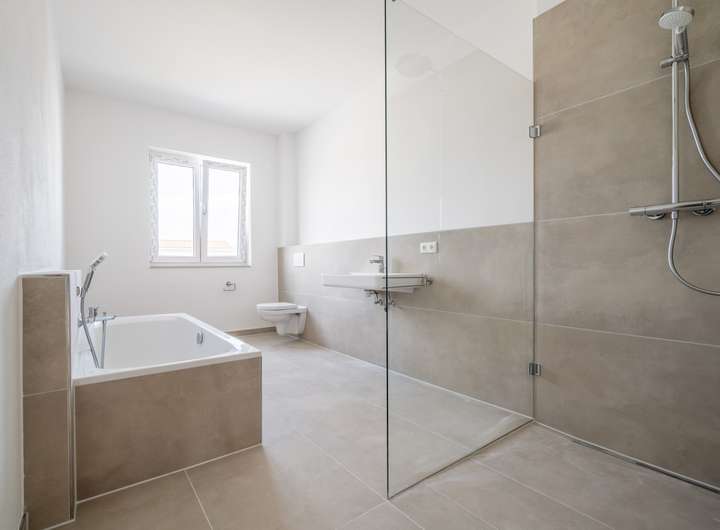Der offen gestaltete Wohn-/Essbereich bildet das Herzstück des Hauses und öffnet sich zur Terrasse - ideal für entspannte Stunden und gesellige Abende. Große Fensterflächen sorgen für viel Tageslicht, während die 3-fach Verglasung und der KfW-55-Standard hervorragende Energieeffizienz gewährleisten. Die Fußbodenheizung schafft ein angenehmes Wohnklima in allen Jahreszeiten. Die stilvollen Bäder überzeugen mit ausgewählten Materialien und Marken-Armaturen. Eine Videosprechanlage sowie elektrische Rollläden erhöhen Komfort und Sicherheit. Die Luftwärmepumpe liefert moderne, ressourcenschonende Haustechnik.